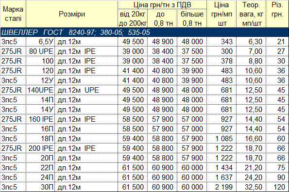Компания «Диамет» имеет в наличии широкий ассортимент металлопроката высокого качества. У нас вы можете купить швеллер цена по наиболее выгодной цене. Мы предлагаем вам качественный сервис с возможностью доставки заказа по всей территории Украины для чего у нас имеется собственный автопарк, а для отгрузки наши склады оборудованы козловыми кранами. Так же нужно обратить внимание на действующие системы скидок, которые будут выгодны для постоянных клиентов покупающих металлопрокат.