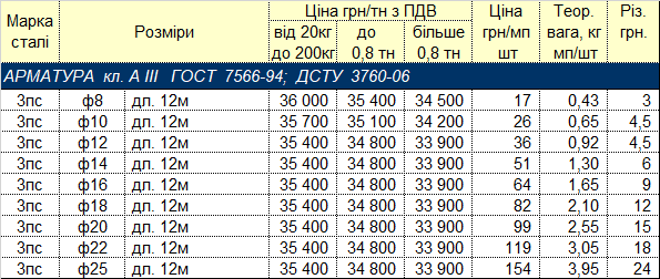 Рифлена арматура, так звана гладка або профільна, має великий попит на ринку металопрокату України і зокрема Києва