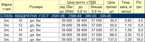 Весь прокат квадратної марки сталі 3пс виготовлений за ДСТУ 2591-06; 7566-94; 380-05; 535-05.